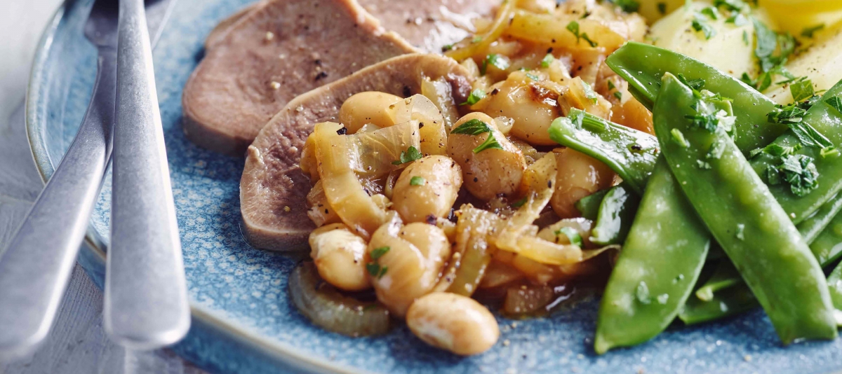 Pork roast with fried potatoes, beans and mint - Frankie Soenen